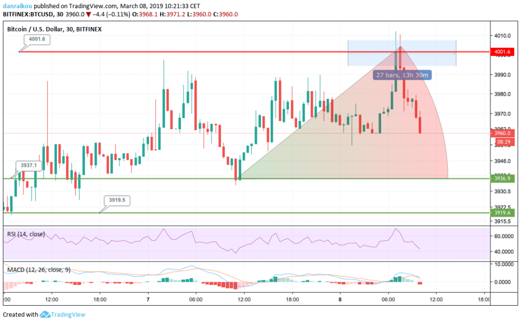Assim sendo, se a tendência de curto prazo não for remediada durante os próximos ciclos no presente suporte, a taxa BTC/USD testará os pontos estabelecidos em US$ 3937 e até mesmo a marca de US$ 3919.