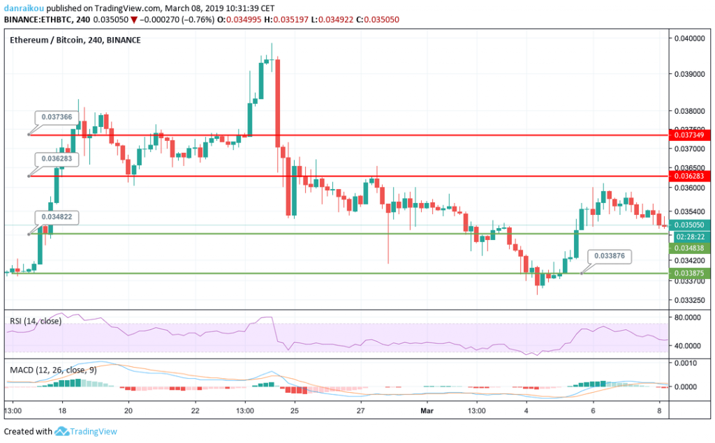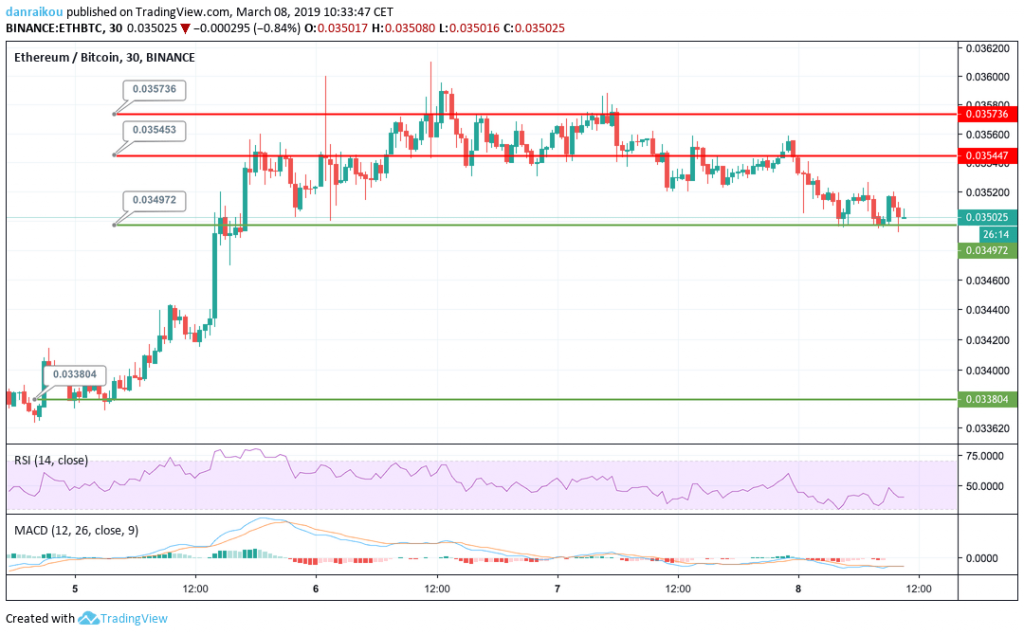 Porém, se a marca de 0,035 BTC “segurar a barra”, ainda não é fora de questão a presença de uma reversão na taxa ETH/BTC durante as próximas 24 horas. Nesse cenário, os pontos que talvez apresentem resistência podem ser verificados nos montantes de 0,0354 BTC e 0,0357 BTC.