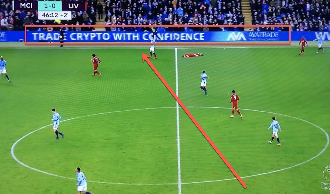 Após a inclusão da BitMEX na primeira página do The Times, as criptomoedas têm marcado presença de formas ainda mais impactantes. No jogo do Manchester City contra o Liverpool, que tomou lugar no Etihad Stadium, foi exposta a mensagem “Trade crypto with confidence”, juntamente ao logo da Avatrade, uma corretora irlandesa que oferece Bitcoin, CFDs e Forex, entre outros produtos.