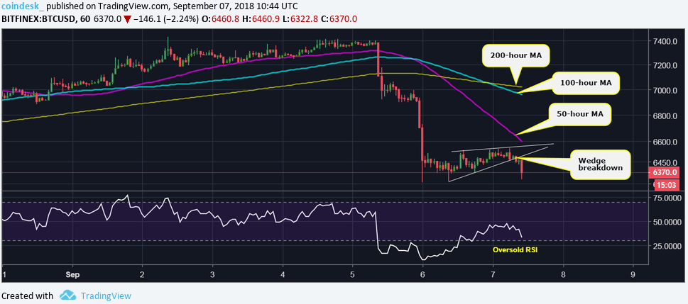 O gráfico diário mostra como o preço quebrou com confiança para baixo a figura “Cunha ascendente”. Isso indica o fim da alta de US$5.859 registrada em 14 de agosto, e o retorno do sentimento de baixa.