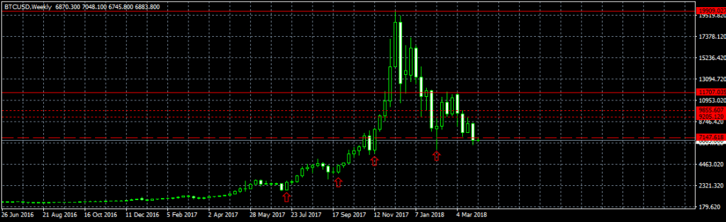 Em caso de recuperação, o preço encontrará uma forte resistência perto das marcas de US$9,2 mil, US$9,8 mil e US$11,7 mil.