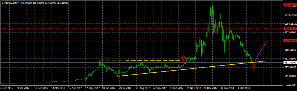 Muitos estão preocupados com o destino da segunda moeda em termos de capitalização – que também chegou a níveis bastante interessantes. Vale lembrar do triângulo global de verão, que naquela época parecia ótimo e funcionou perfeitamente, fazendo com que o preço se encaixasse novamente dentro da mesma linha da tendência de alta de longo prazo.