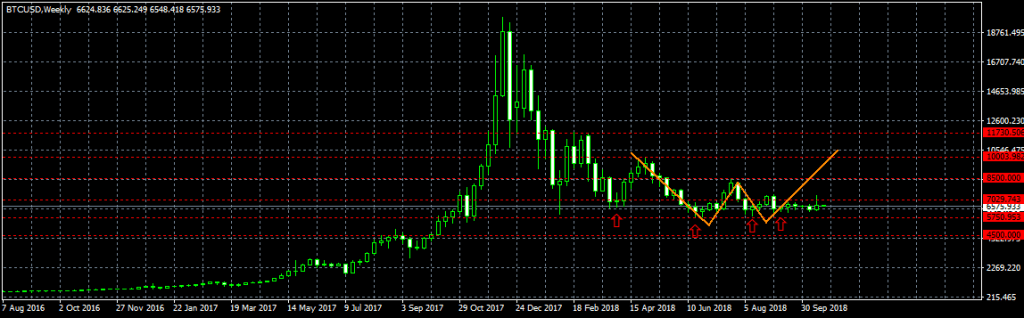 Existe uma continuação da implementação da figura W, delineada ainda no final de agosto. Vale lembrar que o objetivo desta figura está localizado na região de US$11 mil. Para a sua implementação foi importante que o preço não caísse abaixo de US$5,75 mil, e os touros conseguiram garantir isso até agora.