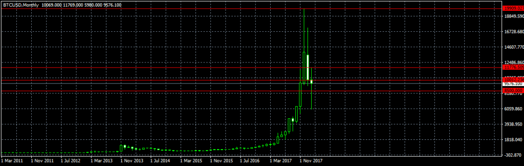 No momento, a vela tem uma longa sombra inferior, indicando que os touros tomaram a iniciativa. No entanto, ela ainda tem um corpo de urso, o que não é muito bom. Idealmente, o mês deve ser concluído em US$10 mil, o que pode ser um sinal positivo para o mercado, permitindo que os compradores quebrem a tendência descendente mais rapidamente.