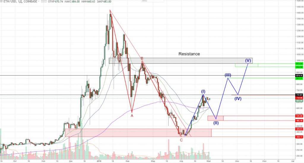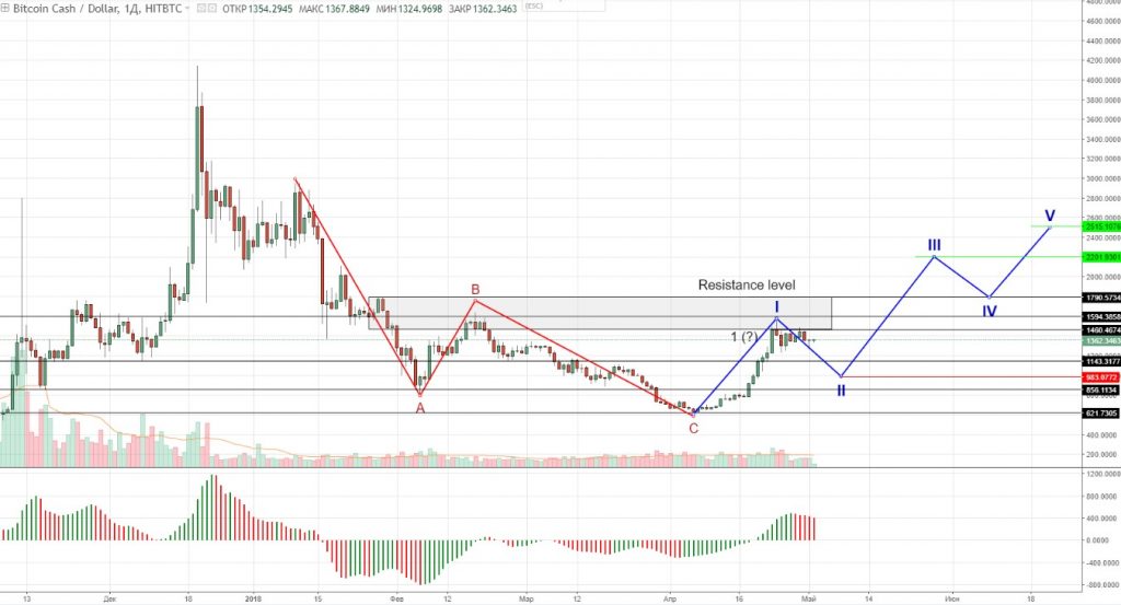 No entanto, antes disso, o preço terá que se fixar acima do nível de resistência US$1.790,57 – US$1.460,46. Nesse caso, o preço também será maior que o pico da primeira onda, que servirá de gatilho para a formação da terceira onda.
