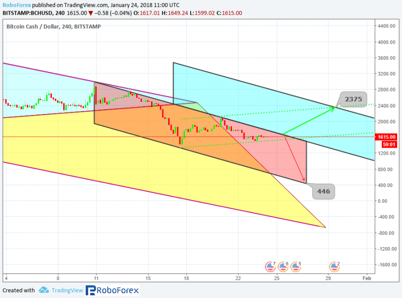 Do ponto de vista da análise técnica, a tendência dominante para o Bitcoin Cash ainda é de queda. O futuro mais próximo da criptomoeda será determinado pelos resultados do teste da linha de resistência do corredor descendente de curto prazo. A quebra do limite superior não apenas abrirá o caminho para o canal de projeção, como também formará o canal da tendência de alta.