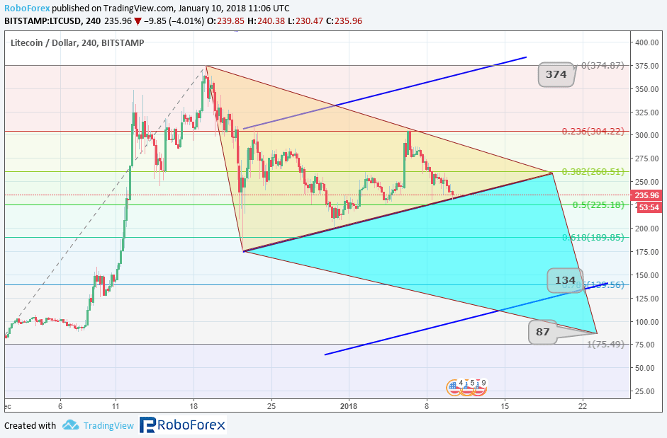 A imagem técnica do Litecoin demonstra o período na fase de urso para essa criptomoeda após um estável crescimento. A faixa de crescimento foi ajustada para 61,8% de acordo com Fibonacci.
