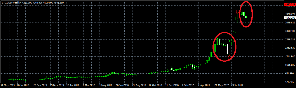 Como esperado, depois que a China anunciou a proibição do ICO e um forte colapso dos preços no último fim de semana e no início da semana, o Bitcoin começou a subir suavemente. O preço da moeda criptográfica começou a crescer monotonamente, tendo recuperado 70% do declínio, no entanto, outro poderoso golpe veio do Império Celestial sob a forma de rumores que noticiavam a proibição do uso de criptomoedas, o fechamento de diversas corretoras e cheque total nas fazendas de mineração. Alguns rumores não foram confirmados, no entanto, as informações negativas espalhadas pelas agências de informação fizeram o seu trabalho e vimos uma queda poderosa nos preços.