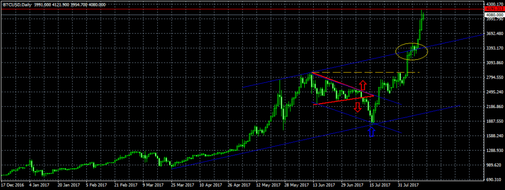Ontem, 13 de agosto, o preço do Bitcoin superou a marca psicológica de US$ 4.000. Será que a onda de otimismo na véspera do SegWit vai continuar mantendo esses preços?