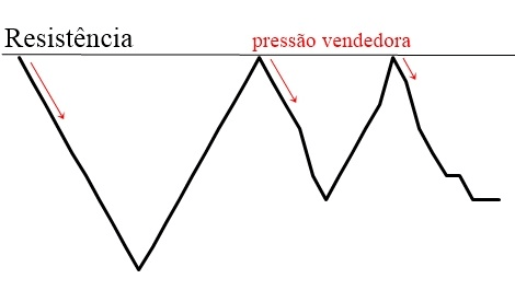 - Tendência de baixa. Se uma resistência está localizada dentro uma tendência de baixa ela tende a ser expressiva. Ou seja, geram uma pressão vendedora maior.