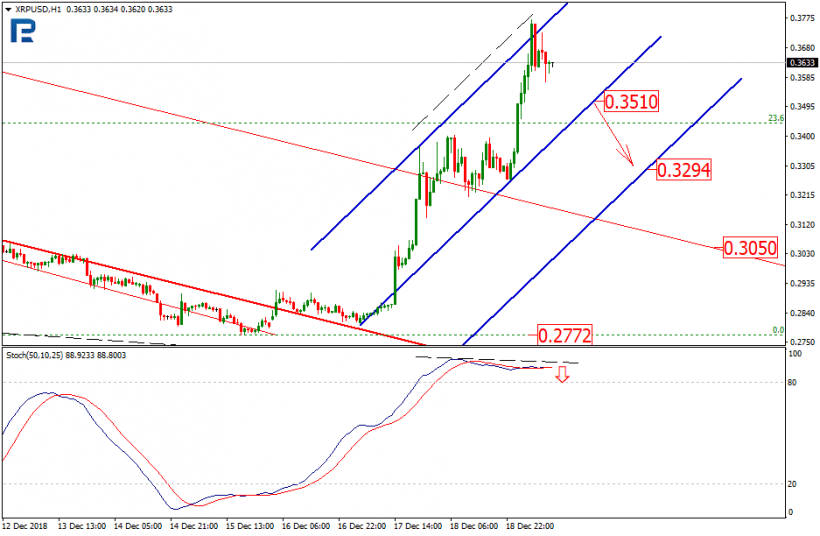 Ao considerar o cronograma horário para o XRP, é possível observar que a dinâmica de curto prazo é suportada por um constante aumento nas cotações. Ao mesmo tempo, a formação de uma divergência no indicador Stochastic pode representar a aproximação de uma reversão.