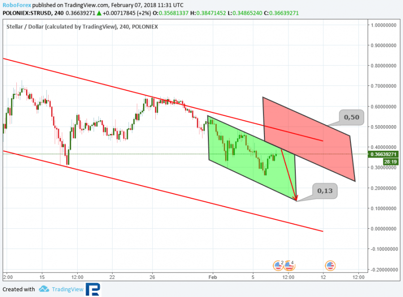 Do ponto de vista da análise técnica, a situação com o Stellar indica o início de uma correção interna para cima. Objetivamente, o canal descendente do movimento não foi violado (somente o último mínimo foi atualizado) e o movimento atual é uma correção em relação ao impulso de declínio anterior.