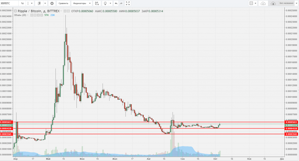 A situação no par de negociação XRP / BTC é a mesma. Um ponto interessante é o crescimento local do patrimônio, apesar da recuperação do Bitcoin.
