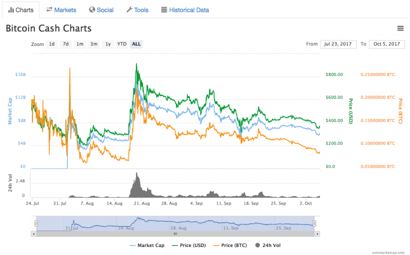 O preço do BCC tem caído constantemente na última semana e, no momento da redação desse artigo, a cotação da moeda é de cerca de US$ 350.