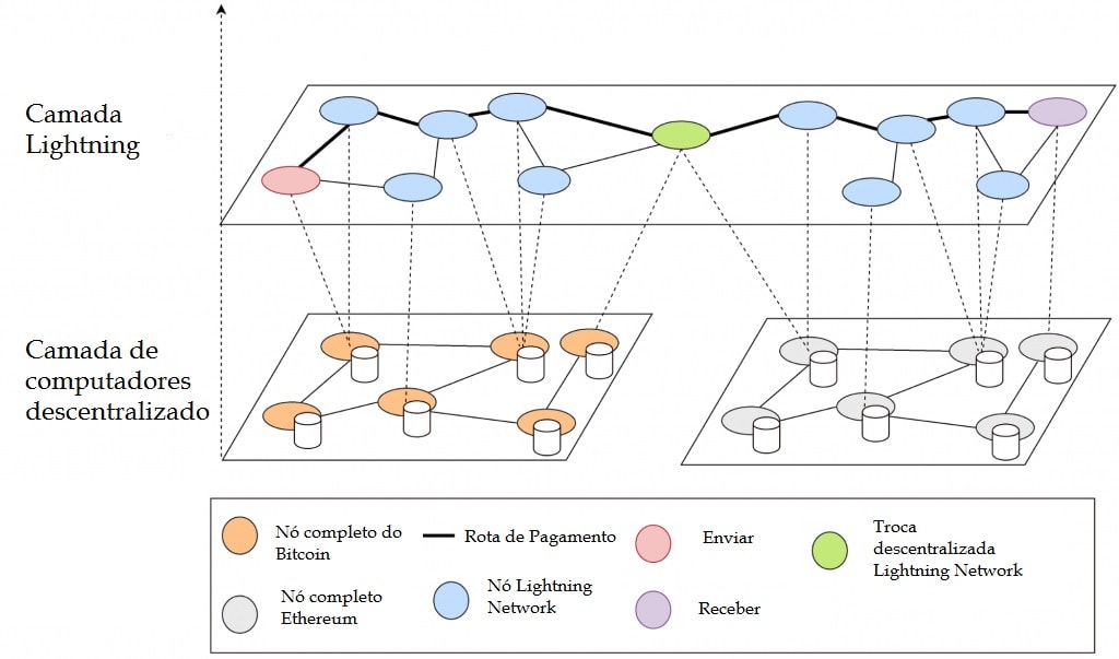 - Uma conexão na Lightning Network pode ser entendida como um canal de pagamento – uma relação entre os participantes, que está registrada na Blockchain e é regulada por um contrato inteligente.