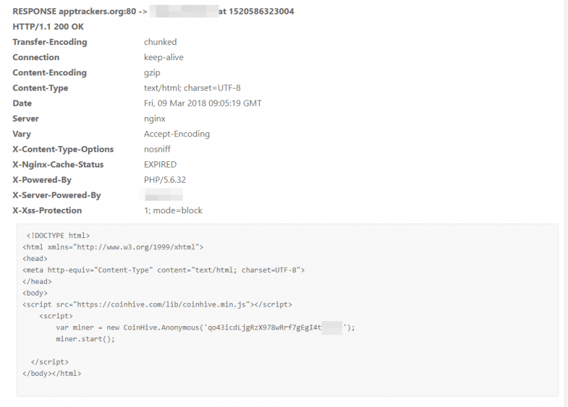 Quando o usuário baixa e abre o aplicativo, o mesmo se conecta automaticamente ao site apptrackers.org, onde reside um programa chamado CoinHive Javascript, projetado para mineração de Monero. O processo começa imediatamente após a conexão ao domínio e passa despercebido pelo usuário, já que a mineradora trabalha em segundo plano quando a tela está desligada e o dispositivo faz uso de dados móveis ou conexão Wi-Fi.