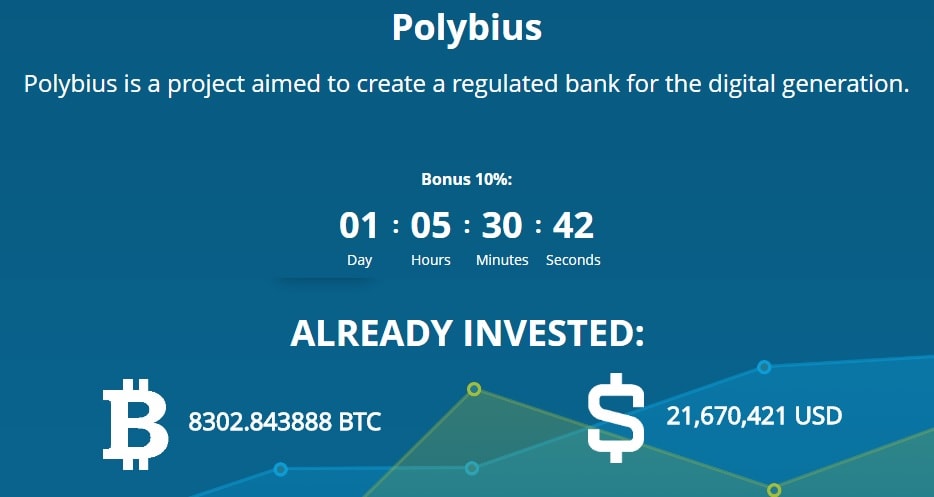 A ICO para crowdfunding do Polybius Bank começou em 31 de maio e durará cinco semanas. No total, a iniciativa planeja conseguir US$ 25 milhões em investimentos.