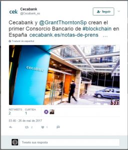Um grupo de bancos espanhóis, em parceria com a consultoria Grant Thornton, criou o primeiro consórcio de blockchain do país. Isso foi relatado no site do banco espanhol Cecabank.