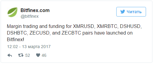 A Bitfinex Exchange abre negociação em margem para Monero (XMR), Dash e Zcash (ZEC).