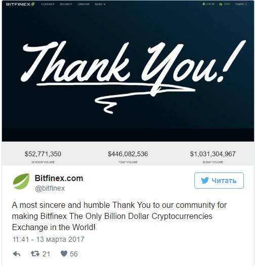 No mesmo comunicado a Bitfinex relatou que nos últimos trinta dias, seu volume de negociação em bolsa excedeu o volume de US$ 1 bilhão, um recorde para a indústria.