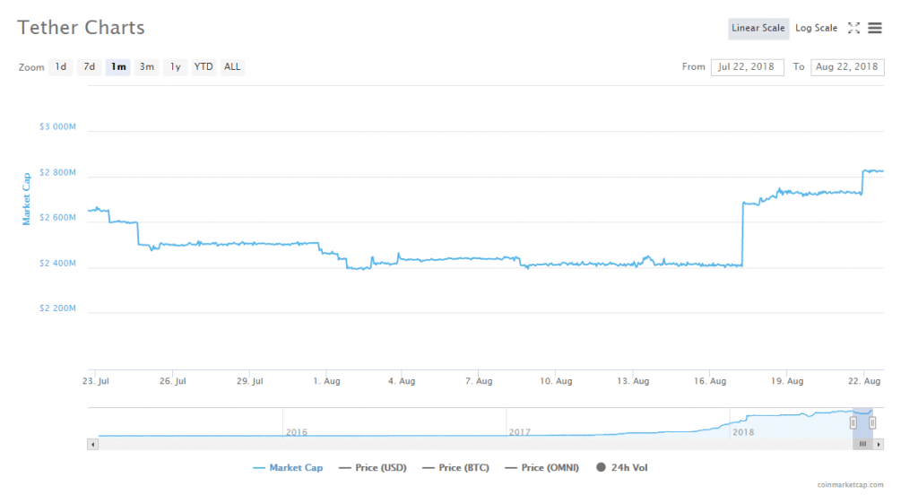 Essa transação se tornou também a maior desde 18 de agosto, quando 20 milhões de tokens USDT foram enviados ao mesmo endereço.