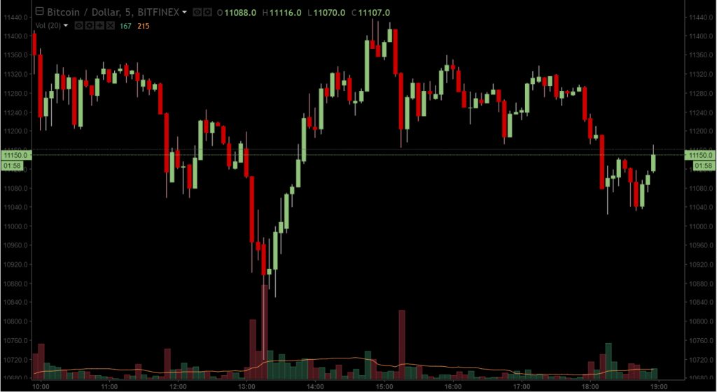 Durante este período, o preço do Bitcoin – anteriormente em US$11.450 – caiu notavelmente, chegando ao mínimo de US$10.780 em determinado momento na Bitfinex. No momento da publicação, a moeda estava sendo negociada por um valor em torno de US$11,1 mil.