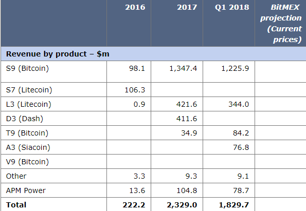 Em 2017, a empresa vendeu mais de 1 milhão de dispositivos ASIC S9 e no primeiro trimestre de 2018, cerca de 0,7 milhão, ao mesmo tempo em que faturou US$2,329 bilhões e US$1,829 bilhão, respectivamente.