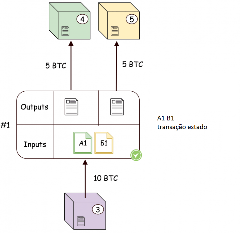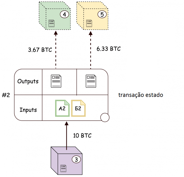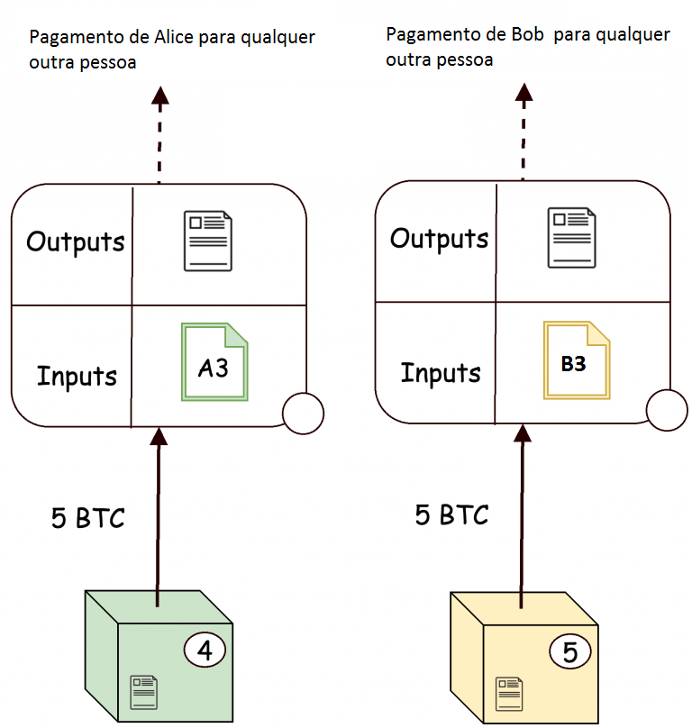 Figura 6: Realizando um pagamento de Alice para Bob no valor 1,33 BTC, modificando a transação-estado