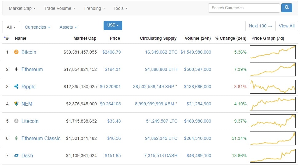 Como pode ser visto a partir do gráfico, desde o início do ano, o mercado capitalização total das criptomoedas cresceu quase 5 vezes.