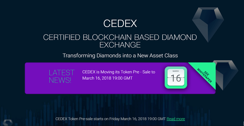 Cedex é a primeira Exchange de diamantes baseada em Blockchain do mundo. A ambiciosa visão da companhia é de juntar proprietários de diamantes que desejem liquidar seus patrimônios e traders que desejem diversificar seu portfólio.