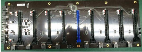 A Colorful C.J1900A-BTC PLUS V20 é uma PCB com oito slots PCI-Express x16 para placas de vídeo.