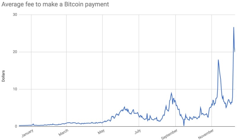Nos últimos dias, as comissões para transações na rede Bitcoin aumentaram dramaticamente. Na semana passada, elas chegaram a US$26 e, eventualmente, cairam para uma média de US$20 (no entanto, vale ressaltar que antes elas cobravam cerca de US$6).