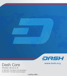 O Dash Core será iniciado. Isso levará um pouco mais do que o habitual na primeira vez que você executá-lo, uma vez que ele precisa gerar dados criptográficos para proteger sua carteira.
