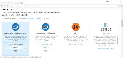 certutil – hashfile <dashcore-version-windows> .exe SHA256