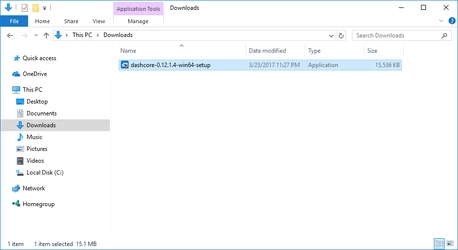 Clique duas vezes no arquivo para começar a instalar o Dash Core.