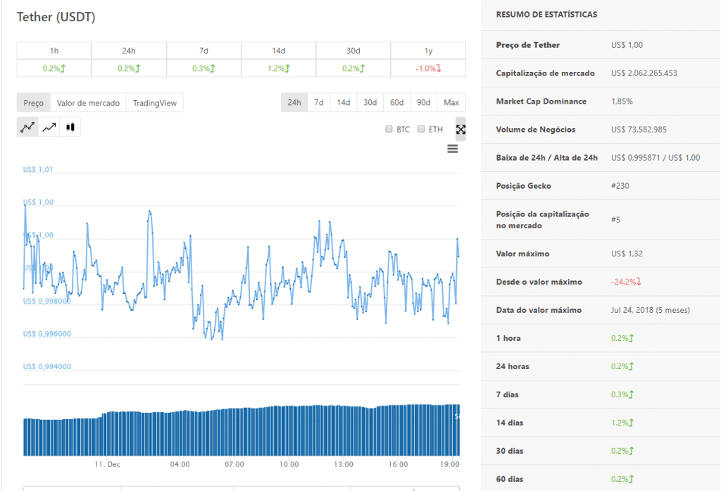 Apesar da significativa queda na capitalização em novembro, o Tether (USDT) continua sendo a stablecoin mais popular de acordo com a CoinGecko: