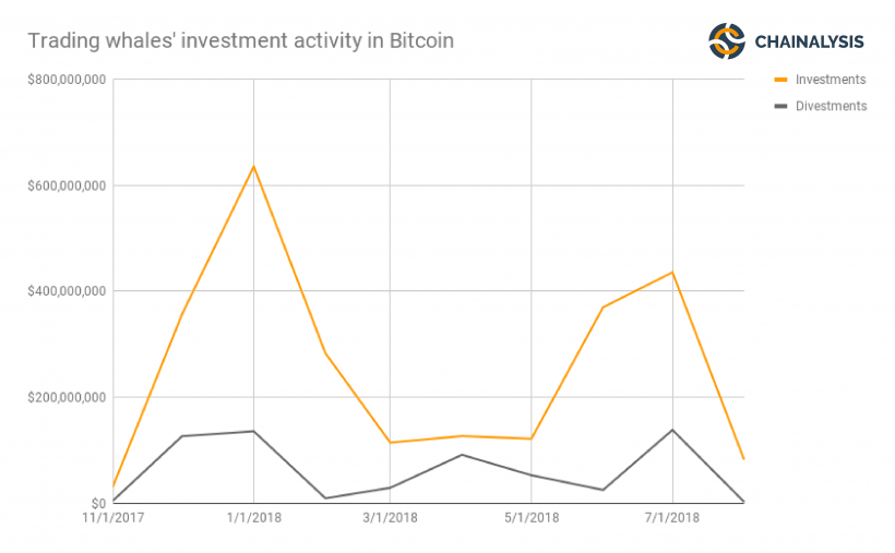 Os analistas ressaltaram que ao longo de 2017-2018, as “baleias de Bitcoin” do grupo de “traders” preferiram comprar criptomoedas quando o preço estava caindo, e não vice-versa.