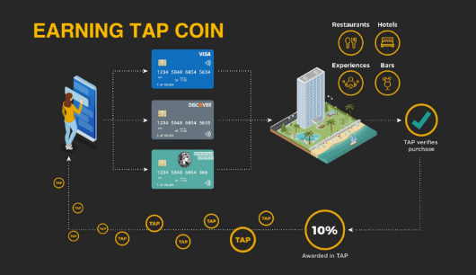 Entenda como ele funciona mundo afora: usuários podem comprar e presentear uma gama de serviços de hospitalidade e experiências, tudo sob um telhado, através de seu cartão de crédito. E então recebe TAP Coins. Clientes são então capazes de acumular esses tokens para gastar em qualquer um dos 100 mil estabelecimentos da rede. Não apenas podem os usuários acessar ofertas inacreditáveis, oferecer drinks para amigos ao redor do mundo e acessar experiências VIPs, mas também ser recompensados por essas atividades e gastar as recompensas facilmente.