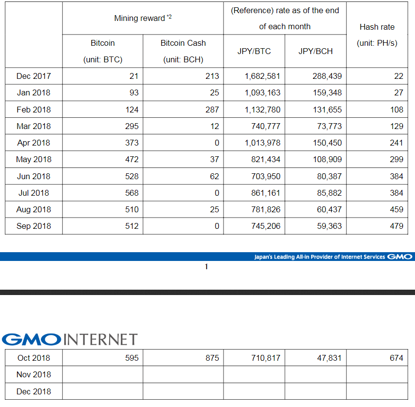 Assim, se de julho a setembro a empresa quase não utilizou o BCH, começando com outubro, a situação mudou drasticamente, uma vez que a partir dos dados da tabela, fica claro que a GMO começou a minerar ativamente essa criptomoeda, com 875 BCH e apenas 512 BTC extraídos no mês.
