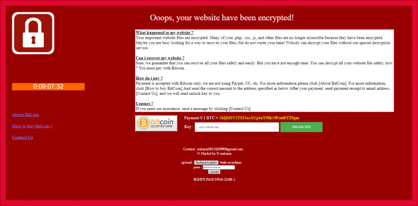 Um hacker chamado X~zakaria invadiu o site do Ministério de Energia e Indústria de Carvão da Ucrânia e exige 0,1 Bitcoin (pouco mais de 24 mil hryvnia) pelo seu desbloqueio. A mensagem do atacante surgiu na principal página do site mev.gov.ua.