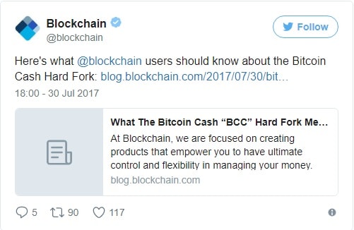 Ao mesmo tempo, a Airbitz, Coinomi, Freewallet, Jaxx e XAPO declararam que após o hard fork do Bitcoin, todos os usuários receberão automaticamente o número equivalente de moedas Bitcoin Cash.