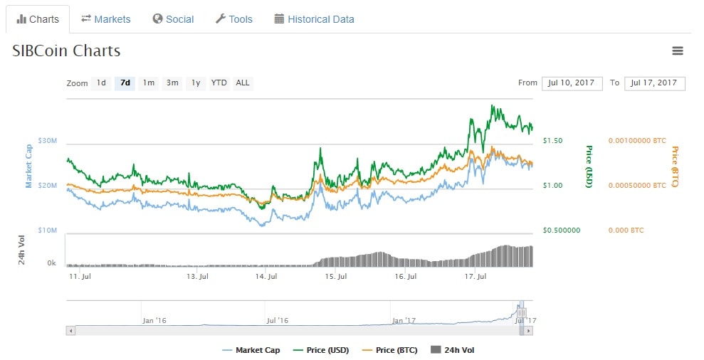 Talvez por isso, o ativo nativo da Sibéria, o SIBCoin esteja no momento registrando uma alta tão inesperada, durante a derrocada da maioria das criptos ontem, a SIB registrou uma melhora nos preços de mais de 30%, a moeda hoje é negociada por US$1.78 ou 0.00085227 BTC, capitalização de mercado no momento da escrita desse artigo é de US$ 26.711.190 e o ativo ocupa o 71º lugar no ranking da CoinMarketCap.