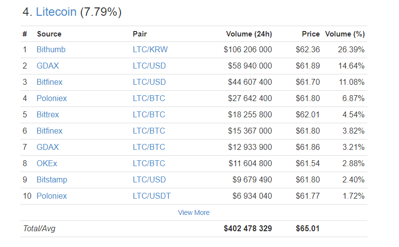 Mais ativamente, Litecoin é negociado na maior corretora de criptografia sul-coreana, a Bithumb.