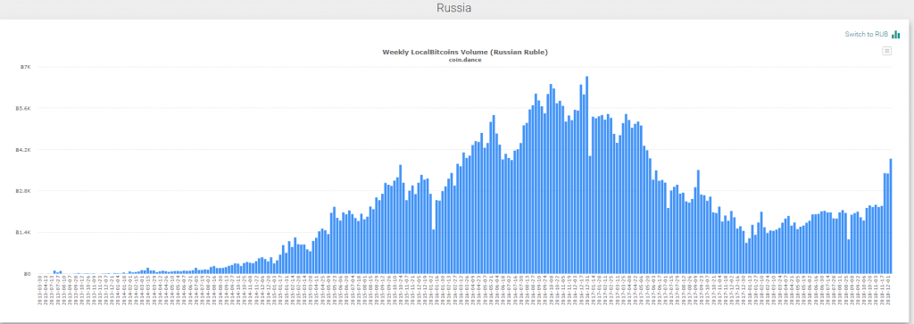 Lembramos que anteriormente relatamos que a Rússia ocupa uma posição de liderança em termos de volumes de negociação na LocalBitcoins. É possível ler mais sobre isso aqui.