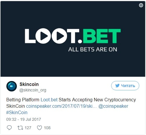 O serviço on-line para e-sports, o Loot.bet anunciou sua intenção de num futuro próximo adicionar o SkinCoin como meio de pagamento. Isto foi relatado pelo The Merkle.