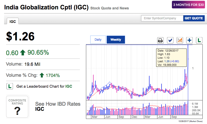 No contexto desta mensagem, as ações da empresa e o volume de negociações cresceram em mais de 100%.