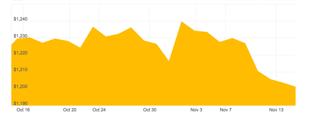 Pela mesma época, o preço por onça-troy do ouro variou de US $ 1.200 a US $ 1.240, o que em tese poderia ser uma das razões para o rápido aumento do preço da AU.