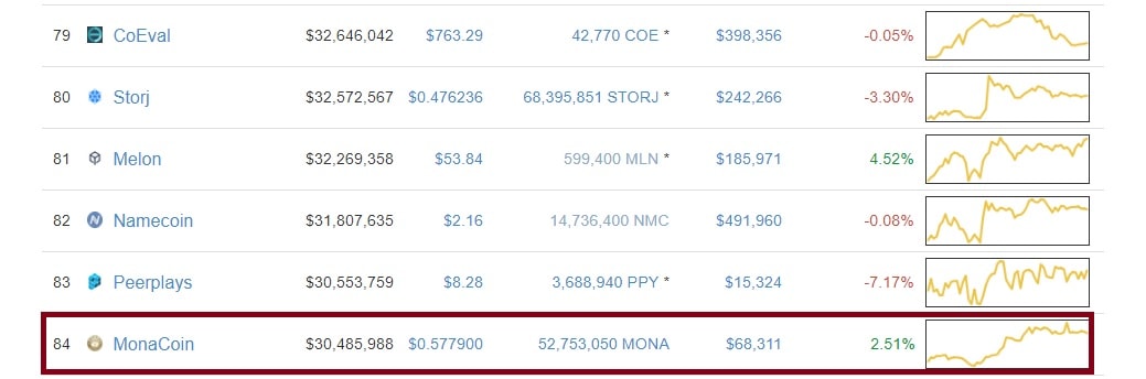 Embora a moeda criptográfica seja fortemente utilizada de forma especulativa, a MonaCoin costuma ser usada com mais frequência do que outras moedas, com o desenvolvimento de vários serviços pelos usuários. É uma criptografia que continua a evoluir com a comunidade.