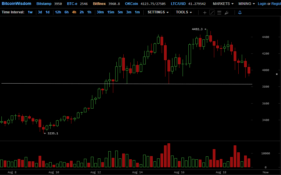Se você prestar atenção ao cronograma diário Bitcoin, você pode ver como, após o rápido crescimento (amplamente apoiado pelo otimismo dos investidores devido à próxima ativação do SegWit), o preço do Bitcoin aumentou significativamente acima de US$ 4.000 e caiu para US$ 3832,5 na terça-feira, 15 de agosto.