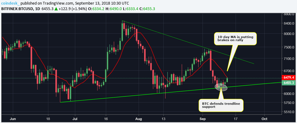 Algumas horas atrás, o “ouro digital” tocou a marca de US$6.490 (na corretora Bitfinex) e atualmente flutua em torno de US$6,45 mil.